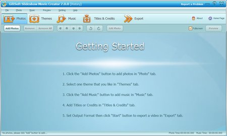 Easy-to-operate with a friendly interface, you are enabled to create more personalized photo videos by appending background music from imported audios, add transitional effects between images, adjust the orientation and display sequence of the imported photos and etc. What you can imagine, you can have it all with GiliSoft Slideshow Movie Creator.